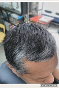 そして最近では、周りは0.1mmのバリカン、トップには16mmのバリカンを入れてアイロンパーマをかけてます。